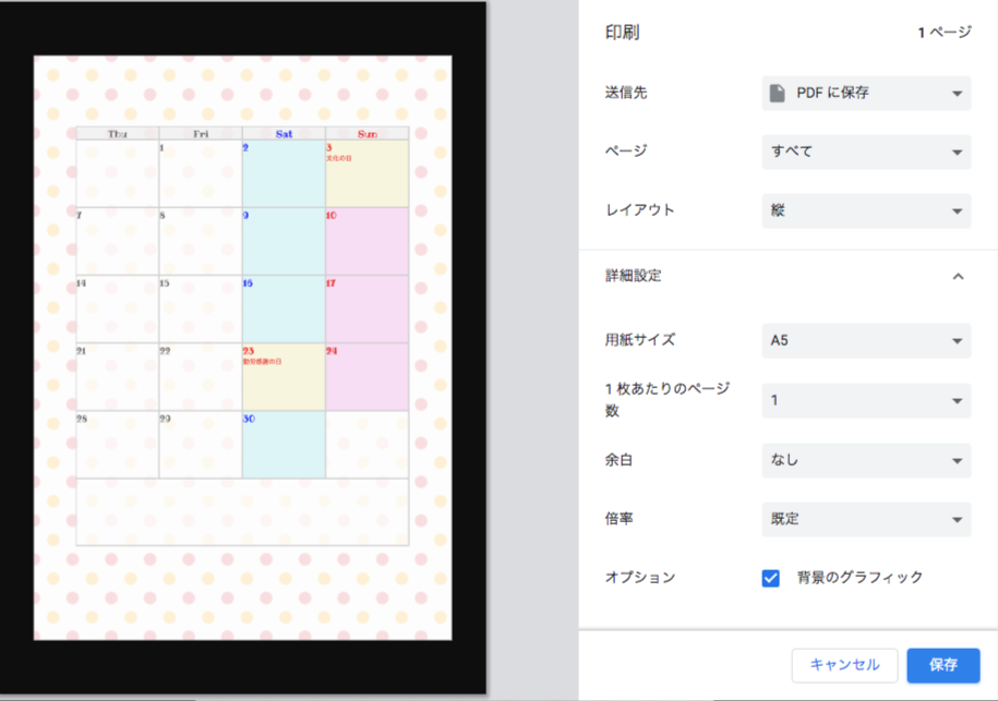 - 背景色を印刷